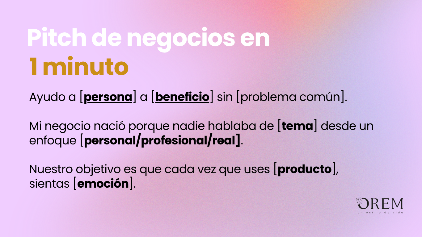 Este mini-pitch es ideal para reels, ferias o presentaciones relámpago, un buen disparo de claridad: quién eres, qué haces y por qué debería importarme.